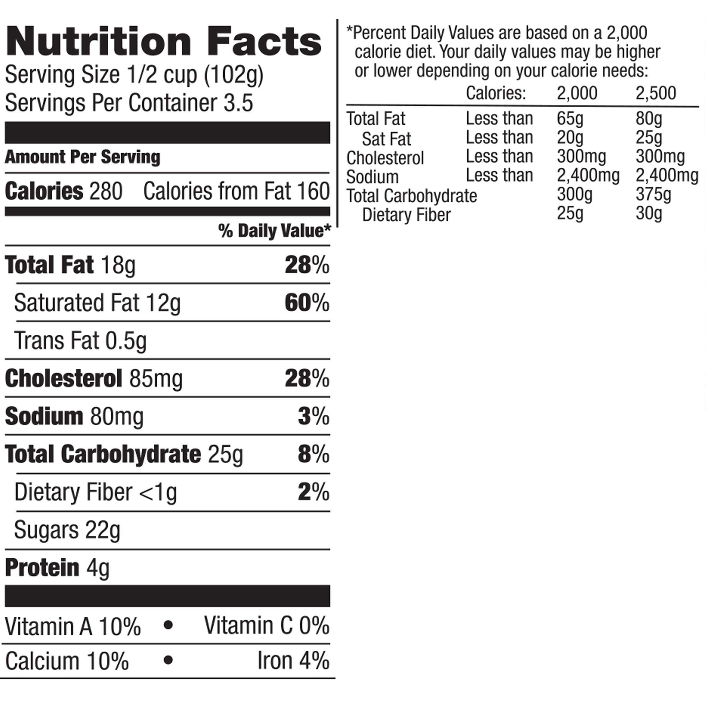 ICE CREAM BARS BARS Nutrition Facts Serving Size 1 Bar (83g) Servrnas Per Calories 300 Calones 200 Total Fat 22g Saturated Fat 13g Trans Fat Og Cholesterol 55mg Sodium 40mg Total 21 g 7% Dietary fiber less than 1 g Sugars 19g Protein 5g V 'tarntn A . Vitamin C Calcium Iron ... Fetch Doc